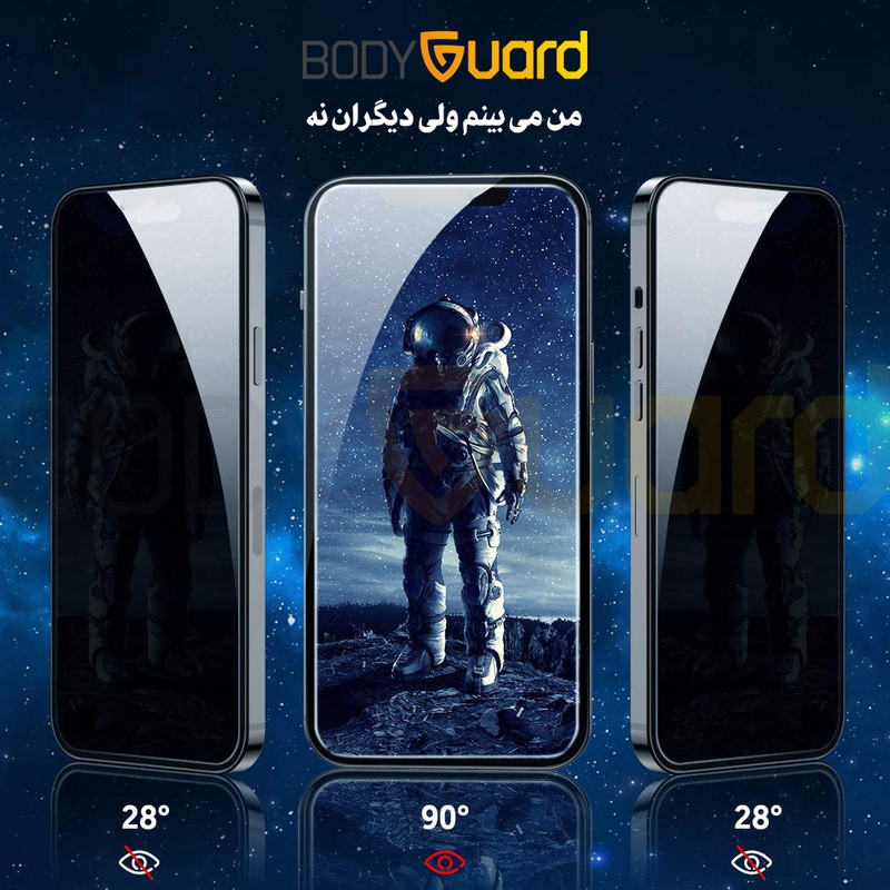 در دنیای امروزی با توجه به شیوه متراکم زندگی حفظ حریم شخصی فردی تبدیل به دغدغه روزمره شده است. می توان ادعا کرد که شخصی ترین وسیله هر کس گوشی موبایل شخص می باشد. سرک کشیدن افراد کنار دستی در گوشی موبایل در مکان های عمومی یا حتی در جمع خانواده یا بین دوستان یکی از آزاردهنده ترین رفتارها می باشد. برای رفع این مشکل شرکت بادیگارد نوعی محافظ صفحه تولید کرده که می تواند حریم خصوصی شما رو به خوبی حفظ کند. گلس پرایوسی یا همان محافظ صفحه حریم شخصی به گونه ای طراحی شده که فقط فردی که مستقیم به صفحه گوشی موبایل نگاه می کند قادر است صفحه نمایش را ببیند و افراد کناری تنها صفحه سیاه رنگ مشاهده می کنند. این گلس علاوه بر خاصیت حفظ حریم شخصی صفحه نمایش گوشی موبایل را در برابر هر گونه ضربه و خط و خش (خشگیر) محافظت می کند.