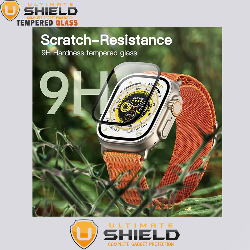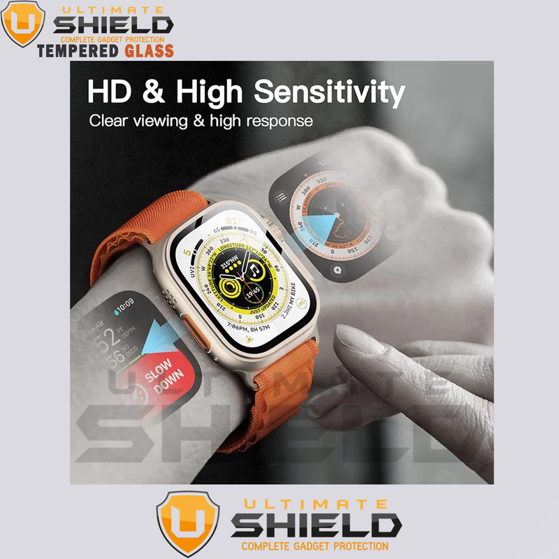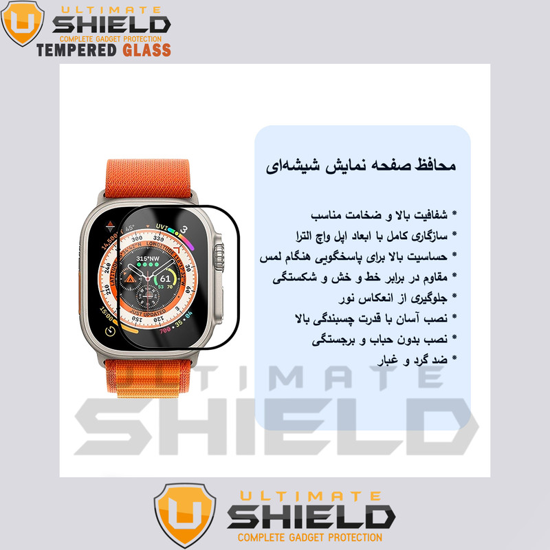 محافظ صفحه نمایش شیشه‌ای SH-FULL سازگاری کامل با ابعاد صفحه نمایش ساعت الترا دارد و در برابر خط و خش مقاوم بوده و برای استفاده‌ی روزمره بسیار مناسب است. شفافیت بالای این گلس موجب می‌شود از کیفیت تصویر و وضوح صفحه نمایش بهره مند شوید. ضخامت مناسبی دارد که سبب می‌شود حساسیت لمسی صفحه نمایش به طور کامل حفظ شود. مواد با کیفیت به کار رفته در این محصول باعث میشود که مقاومت بالایی در برابر ضربه و شکستگی داشته باشد. همچنین نصب این محصول بسیار آسان بوده و به علت چسبندگی بالا به هنگام نصب حباب و برجستگی اضافه روی صفحه نمایش ساعت شما به وجود نخواهد آمد و محافظ به طور دقیق روی ساعت می‌چسبد.