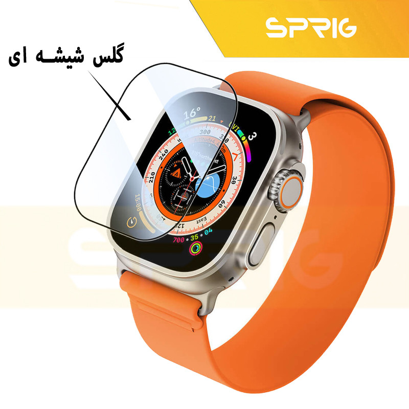 محافظ صفحه نمایش شیشه‌ای اسپریگ مدل Full Glass مناسب برای اپل واچ Ultra / Ultra 2 49mm
