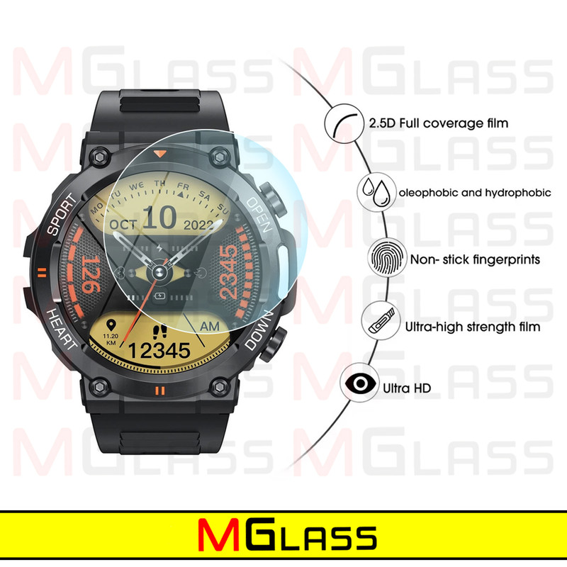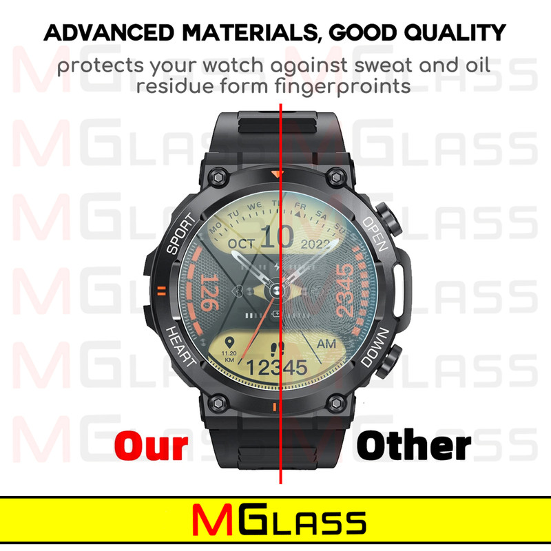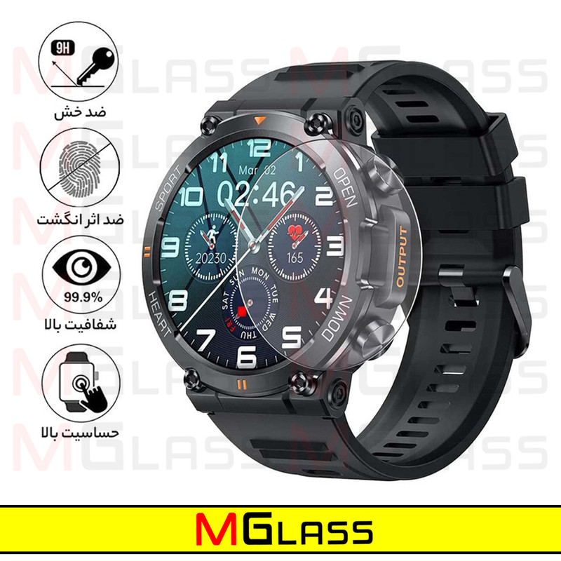 این محافظ صفحه نمایش شیشه‌ای ضد خط و خش بوده، هنگام نصب حبابی روی صفحه نمایش نمی‌افتد، ضد باکتری، ضد جرم و نامرئی است. دارای ضخامت بسیار کم است بنابراین ظاهر ساعت شما را چندان تغییر نمی دهد. نصب آن نیاز به دقت دارد.