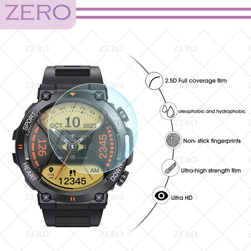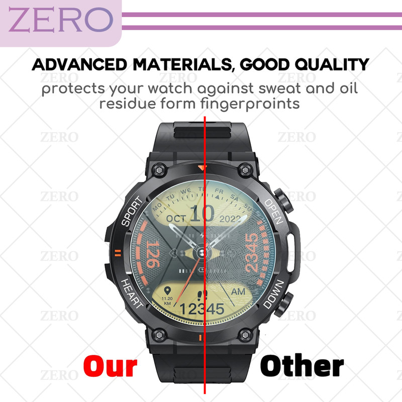 این محافظ صفحه نمایش شیشه ای ضد خط و خش بوده، هنگام نصب حبابی روی صفحه نمایش نمی‌افتد، ضد باکتری، ضد جرم و نامرئی است. دارای ضخامت بسیار کم است بنابراین ظاهر ساعت شما را چندان تغییر نمی دهد. نصب آن نیاز به دقت دارد.