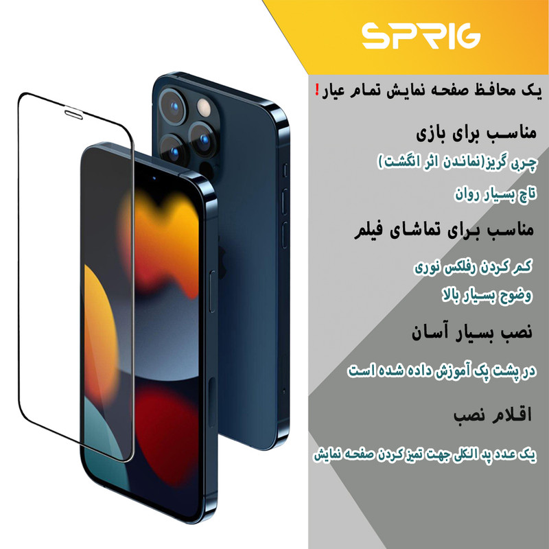 محافظ صفحه نمایش شیشه ای اسپریگ، یک محافظ صفحه نمایش ضد خراش و باکیفیت است که به خوبی از اسکرین موبایل شما حفاظت میکند. این گلس در عین محافظت کامل از صفحه نمایش موبایل شما کوچکترین تاثیری بر عملکرد تاچ و لمس گوشی نخواهد داشت و کیفیت صفحه نمایش را نیز کاهش نمی دهد علاوه بر این جلوی خط و خراش افتادن روی ال سی دی را می گیرد و در صورت زمین خوردن، آسیبی به صفحه نمایش گوشی وارد نمیشود.