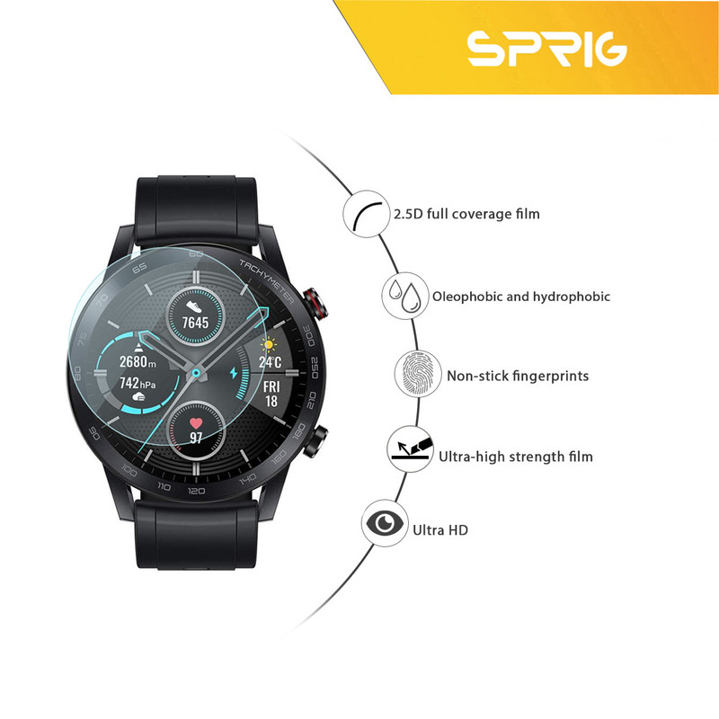 محافظ صفحه نمایش شیشه ای اسپریگ مدل SPG دارای مزایایی مانند ضد خط و خش ، نیفتادن حباب روی صفحه نمایش ، ضد باکتری و جرم و نامرئی بودن آن است. این نوع محافظ صفحه ضخامت بسیار کمی دارد بنابراین ظاهر ساعت شما را چندان تغییر نمی دهد. نصب این نوع محافظ صفحه نیاز به دقت دارد.