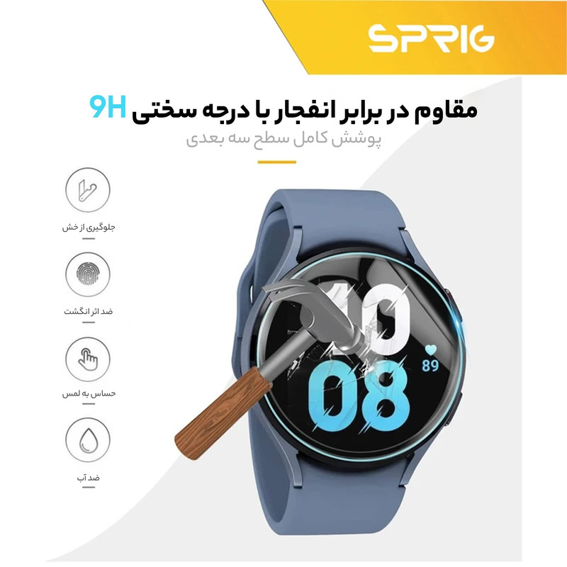 محافظ صفحه نمایش شیشه ای اسپریگ مدل SPG دارای مزایایی مانند ضد خط و خش ، نیفتادن حباب روی صفحه نمایش ، ضد باکتری و جرم و نامرئی بودن آن است. این نوع محافظ صفحه ضخامت بسیار کمی دارد بنابراین ظاهر ساعت شما را چندان تغییر نمی دهد. نصب این نوع محافظ صفحه نیاز به دقت دارد.
