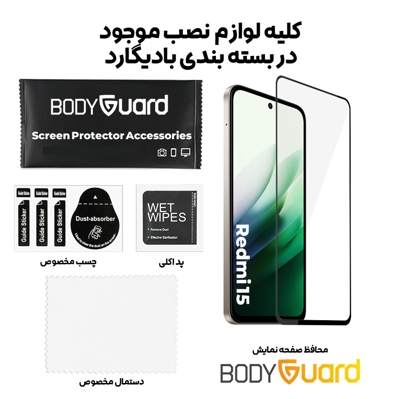 محافظ صفحه نمایش شیشه ای بادیگارد مدل FX مناسب برای گوشی موبایل شیائومی Redmi 15