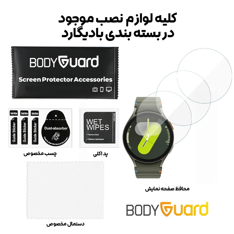 محافظ صفحه نمایش شیشه ای بادیگارد مدل GW مناسب برای ساعت هوشمند سامسونگ Galaxy Watch 7 40 mm بسته 3 عددی