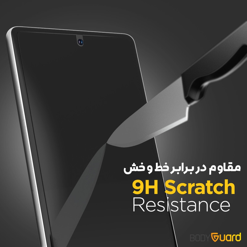 ویژگی‌ها9H , جلوگیری از انعکاس نور , جلوگیری از ایجاد خط و خش , قابلیت نصب آسان , مقاوم در برابر چربی و اثرانگشت , نصب بدون حباب