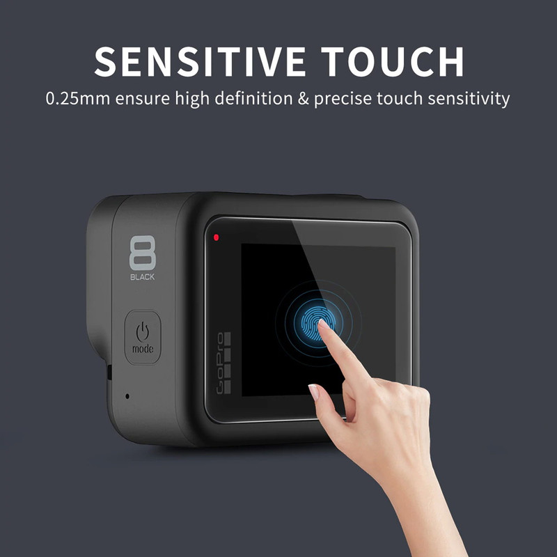 کیفیت ساخت این گلس به گونه ای است که هنگام نصب روی مانیتور دوربین گوپرو بر روی تاچ دوربین تاثیر منفی نمی گذارد و همچنین هنگام نصب روی لنز پروتکتور به دلیل شیشه ای بودن تاثیر منفی روی کیفیت عکسبرداری و فیلمبرداری ندارد.