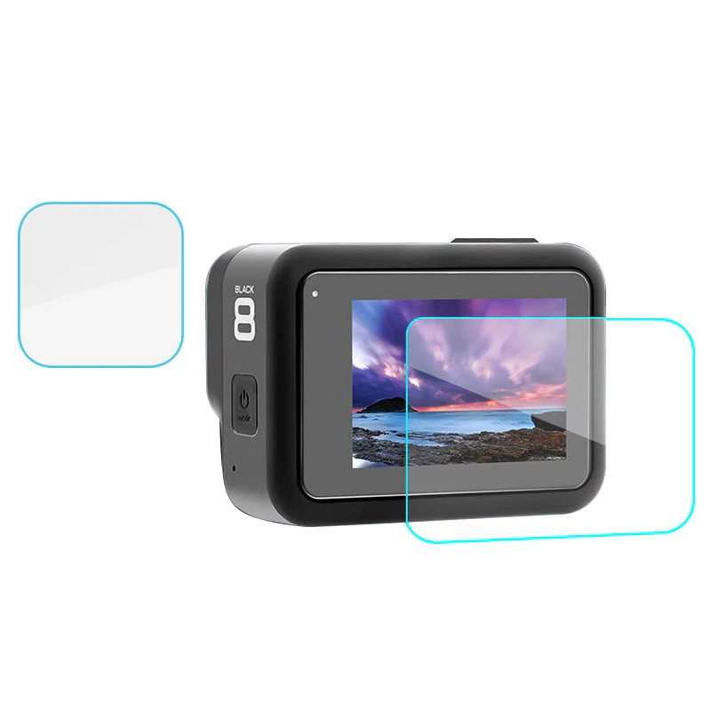 گلس محافظ دوربین گوپرو شامل یک پک دوتایی محافظ صفحه نمایش و محافظ لنز پروتکتور می باشد.