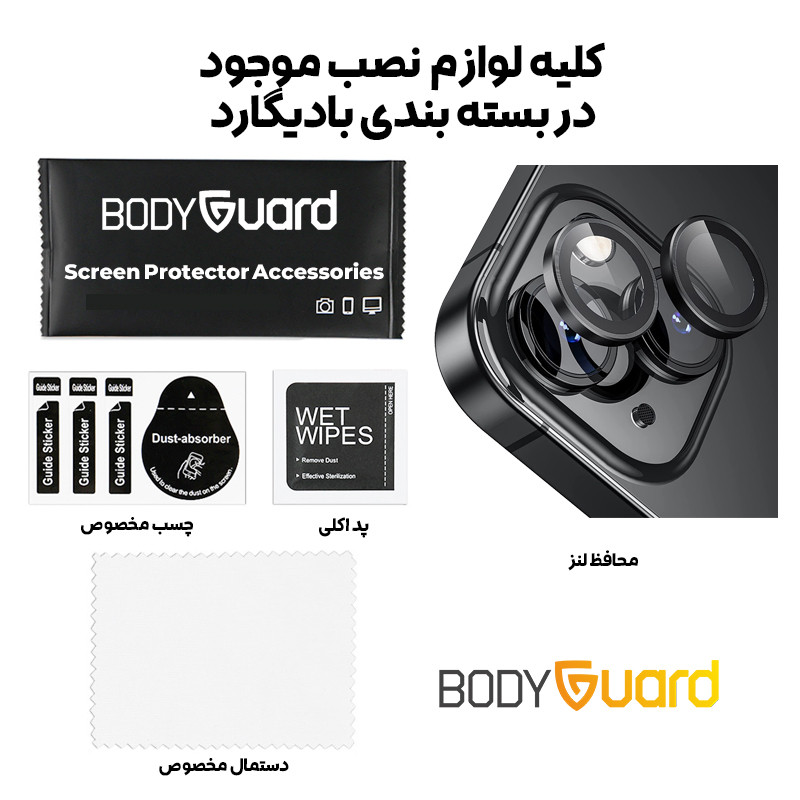 | مشخصات دیگر | گلس رینگی دوربین 2 تکه - نصب آسان - همرنگ گوشی - تمام لوازم مورد نیاز نصب درون بسته بندی |