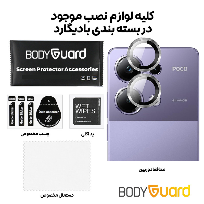 گلس رینگی بادیگارد مناسب برای گوشی Poco M6 Pro 4G می باشد. این نوع گلس برای محافظت از دوربین گوشی در برابر خط و خش و ضربه کاربرد دارد. گلس رینگی در رنگهای مختلف از جمله مشکی، نقره ای، چند رنگ و .... تولید می شود.