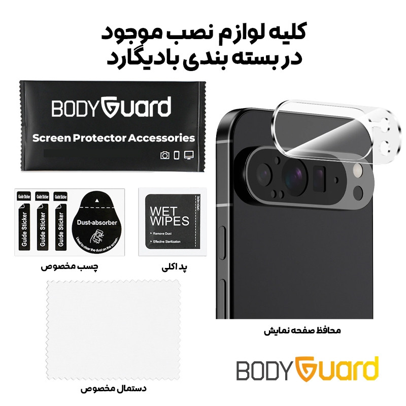 محافظ لنز دوربین بادیگارد مدل Clear مناسب برای گوشی موبایل گوگل Pixel 9 Pro