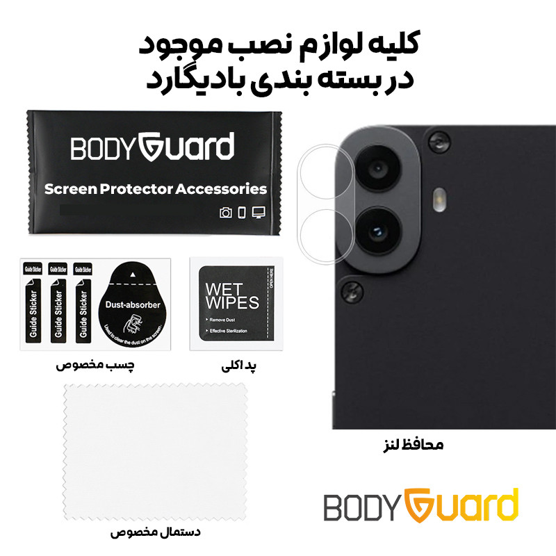 این روزها با توجه به بزرگتر شدن ابعاد دوربین تلفن های همراه بحث حفاظت از لنز دوربین به دغدغه کاربران گوشی ها تبدیل شده است. شرکت بادیگارد با کمک سابقه درخشان و تجربه خود در محافظت از صفحه نمایش تلفن های همراه اقدام به تولید محافظ مخصوص لنز گوشی موبایل با قابلیت نصب آسان کرده است. طراحی این محصول به گونه ایست که به راحتی توسط هر فردی قابل نصب می باشد.