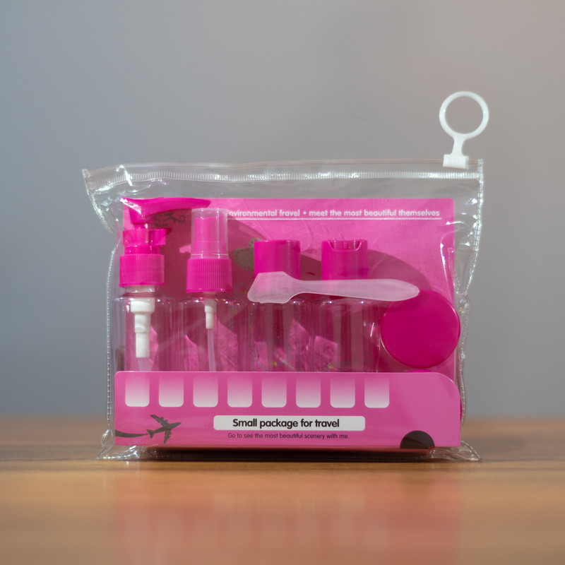 | سایر مشخصات | 8 تکهای شامل یک عدد بطری پمپی، یک بطری اسپری، دو عدد بطری در دکمهای. مناسب برای سفر و جابجایی لوازم آرایشی در کیف و جیب.دارای بگ پلاستیکی زیپ دار برای بسته بندی راحت. |