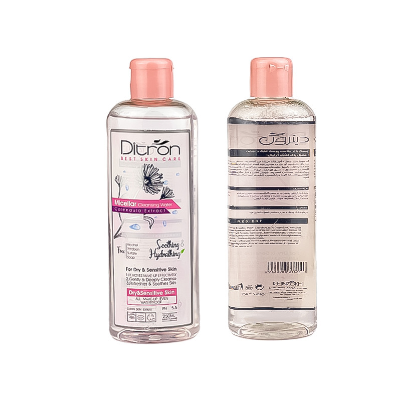میسلار واتر یک محصول مراقبت از پوست چند منظوره هستش که ساختاری نرم داره و آسیبی به پوست های حساس نمیزنه.میسلار واتر خشک دیترون یک محلول پاک کننده آرایش بر پایه آب هستش که مناسب پاک کردن آرایش های ضد آب و بادوام هست. این ماده قدرت پاک کنندگی بالایی داره و از اون مهم تر اینه که به پوست های حساس آسیبی نمیزنه.میسلار واتر میتونه باعث از بین رفتن کثیفی، آرایش و چربی بشه و یک گزینه مناسب برای استفاده در سفر های طولانی جاده ای هست.میسلار واتر خشک دیترون علاوه بر پاک کنندگی خوبی که داره با استفاده از عصاره کالاندولایی که داخلش وجود داره میتونه از خشکی پوست جلوگیری کنه و پوست شما رو مرطوب نگه داره. میسلار واتر میتونه به شفاف نگه داشت پوست به شما کمک کنه و یکی از ویژگی های مهم دیگه ی اون میتونیم به این موضوع اشاره کنیم که این ماده میتونه به آکنه پوست کمک کنه. آب میسلار باعث جلوگیری از مسدود شدن منافذ پوست میشه و از ایجاد آکنه روی پوست جلوگیری میکنه.