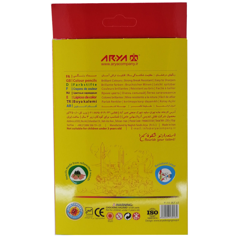 | سایر توضیحات | رنگ های درخشان مقاومت شکنندگی بالا غیر سمی قابلیت تراش آسان سطح مقطع شش ضلعی نامناسب برای کودکان زیر 3 سال همراه با یک تراش |