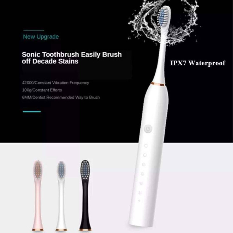 مسواک برقی سونیک sonic مدل X-3 جنس بدنه آن ضد آب است که به شما امکان می دهد هنگام دوش گرفتن نیز بتوانید از مسواک استفاده کنید. دارای چهار سری است که برای مسواک زدن سطح دندان ها و تمیز کردن بین دندان ها کاربرد دارد. اندازه مسواک 8.2 اینچ در حدود 20 سانتیمتر می باشد.