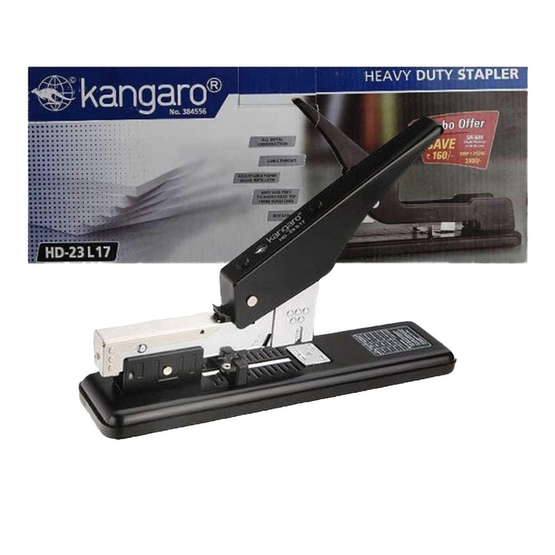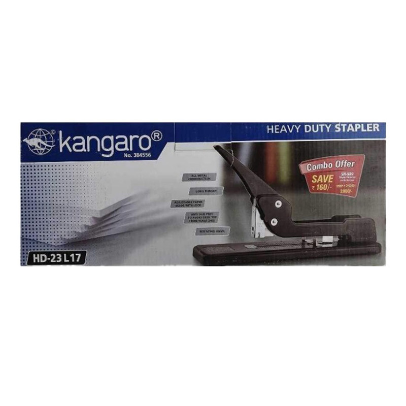 ماشین صحافی کانگرو محصولی از برند معروف کانگرو و تولید کشور هندوستان می باشد.این دستگاه صحافی قابلیت دوخت (منگنه ) همزمان 200 برگ کاغذ هشتاد گرم را دارد . سوزن مورد استفاده در این ماشین صحافی از سایز 12/10 الی 12/17 می باشد . علا.ه بر سایزهای ذکر شده شما می توانید از سوزن منگنه سایز 24 و 26 هم استفاده کنید . این محصول به خوش دستی و کارآیی بسیار بالا شهرت دارد و علاوه بر این پارامترهای فنی ، جنس بدنه ماشین صحافی از فلز می باشد که به دستگاه استحکام بالایی بخشیده است .