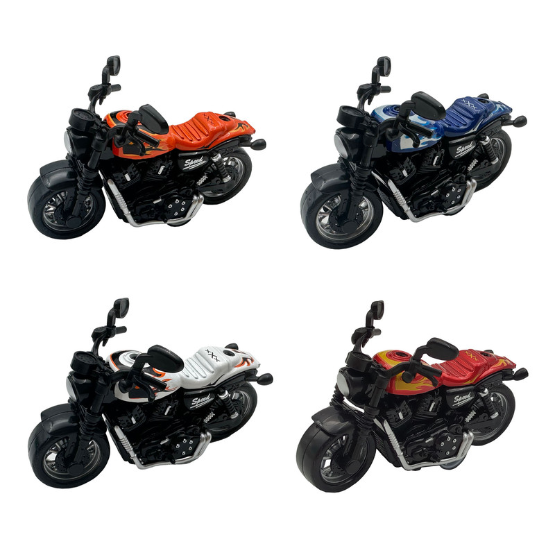 اسباب بازی موتور 4 عددی شامل 4 عدد موتور با رنگ های متنوع که جنس فلز و پلاستیک ساخته شده اند. این موتورها به صورت عقب کش کار کرده و ساخت چین می باشند. این موتورها بدون جعبه بوده و طول آن ها 10 سانتی متر می باشد.