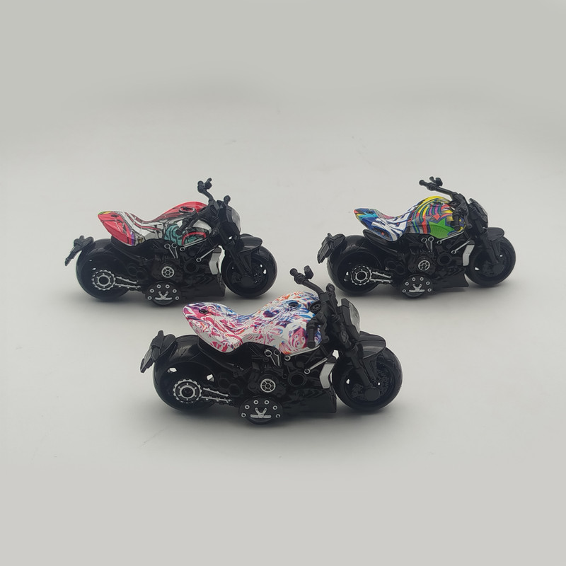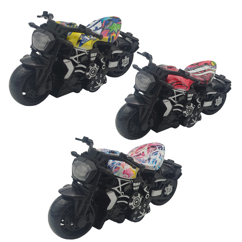 اسباب بازی موتور 3 عددی شامل 3 عدد موتور با رنگ های متنوع که جنس فلز و پلاستیک ساخته شده اند. این موتورها به صورت عقب کش کار کرده و ساخت چین می باشند. این موتورها بدون جعبه بوده و طول آن ها 11 سانتی متر می باشد.