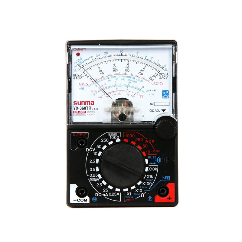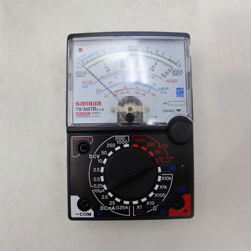 مالتی متر آنالوگ SAMWA از نوع عقربه ای مدل YX-360TR، دارای توانایی اندازه گیری 4 کمیت الکتریکی از جمله ولتاژ متناوب AC، ولتاژ مستقیم DC، جریان DC و مقاومت الکتریکی یا اهم با دقت بالا، نمایش دادهها به صورت بیدرنگ و Real Time، توانایی تست اتصال کوتاه با صدای بیزر، صفحه نمایش به ابعاد بزرگ، منبع تغذیه باتری قابل تعویض، فیوز محافظ، ولوم تنظیم نقطه صفر
