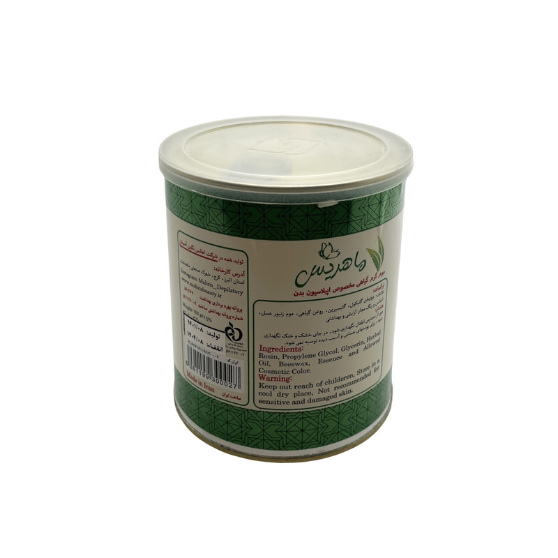 | راهنمای استفاده | موم را روی قسمتی که موی زائد رشد کرده، در جهت رشد موها بمالید. - پارچه یا پد مخصوص را روی موم بگذارید و فشار دهید که خوب بچسبد. - چند لحظه صبر کنید سپس به سرعت پد را در جهت خلاف رویش مو به سرعت بکشید |