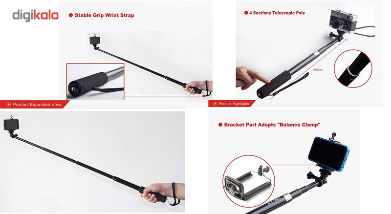 | سایر توضیحات | قابلیت ها: -اندازه دور دسته 2 سانتی متر -پیچ نگه دارنده دوربین گوپرو -گیره نگه دارنده گوشی موبایل -در حالت باز 96 سانتی متر -در حالت بسته یا جمع 31 سانتی متر -جنس بدنه : آلومینیوم -مناسب برای دوربین Gopro ، گوشی و دوربین |
