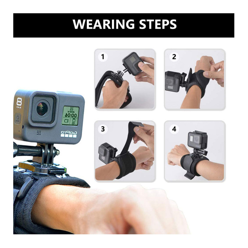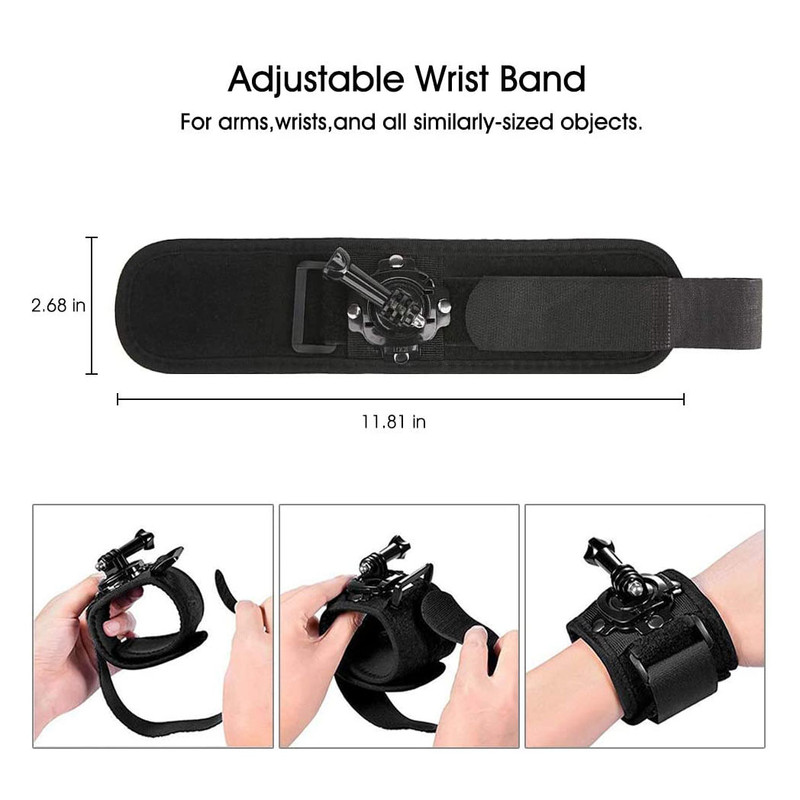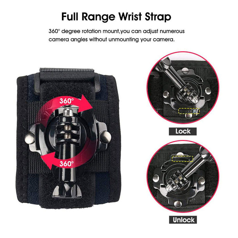 | ویژگی های فنی | قابلیت تنظیم سایز دارای مانت اتصال دارای قفل قابلیت نصب بر روی مچ و بازو قابل استفاده برای تمامی مدل های گوپرو |