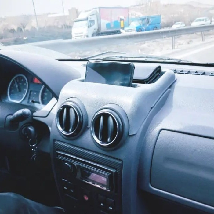 مکمل روی داشبورد رنو تندر90 ( ال90 ) می باشد . بسیار زیبا بوده و جای ویژه برای قرار گرفتن انواع گوشی دارد که بدون نیاز به پایه می توان برای نقشه خوانی گوشی را روی آن قرار داد . دارای سطح صاف جهت قرار دادن انواع مایعات می باشد که نمونه های مشابه این قابلیت را ندارند. دارای چسب 2 طرفه در پشت محصول می باشد. محل مناسبی برای قرار دادن گوشی و لیوان مایعات و کیف پول و... می باشد. طریقه نصب : ابتدا روی داشبورد کاملا تمیز کنید ( می توان از الکل برای تمیزی بیشتر کمک گرفت ). سپس روکش چسب را جدا کرده و در محل مشخص بچسبانید.
