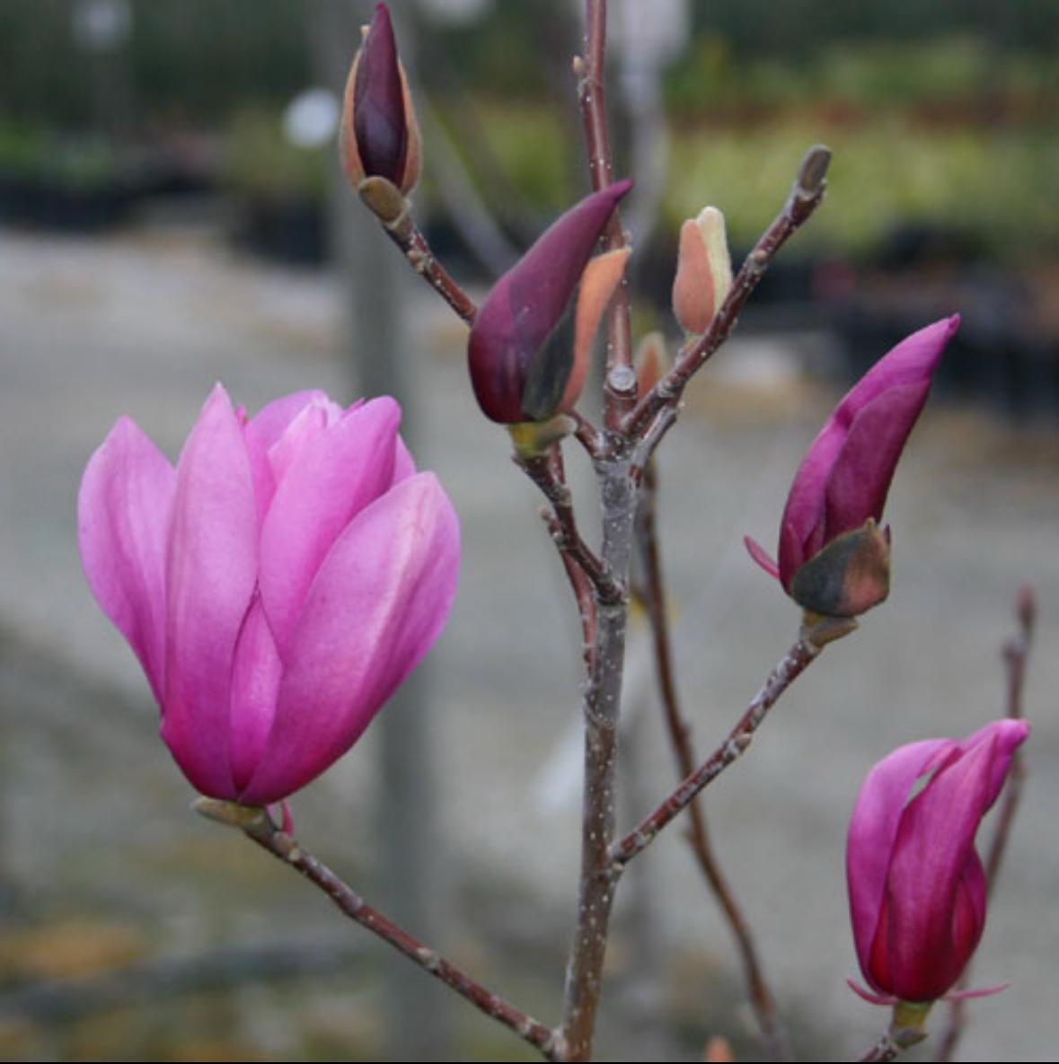 مگلونیا زمستانه. گل بنفش : در فصل زمستان قبل از در اومدن برگها به گل مینشیند و گلدهی تا اوایل فروردین ادامه دارد (البته گیاه باید بالغ شده باشد)بعد برگهایش ظاهر میشود از آبان تا دی ماه برگهایش میریزد و از دی ماه دوباره شروع به گلدهی میکند دمای تا ۱۰درجه زیر صفر رو تحمل میکند هم در باغچه و هم در گلدان نگهداری میشود سایز گلدان ۱۵ ارتفاع گل ۴۵-۷۰