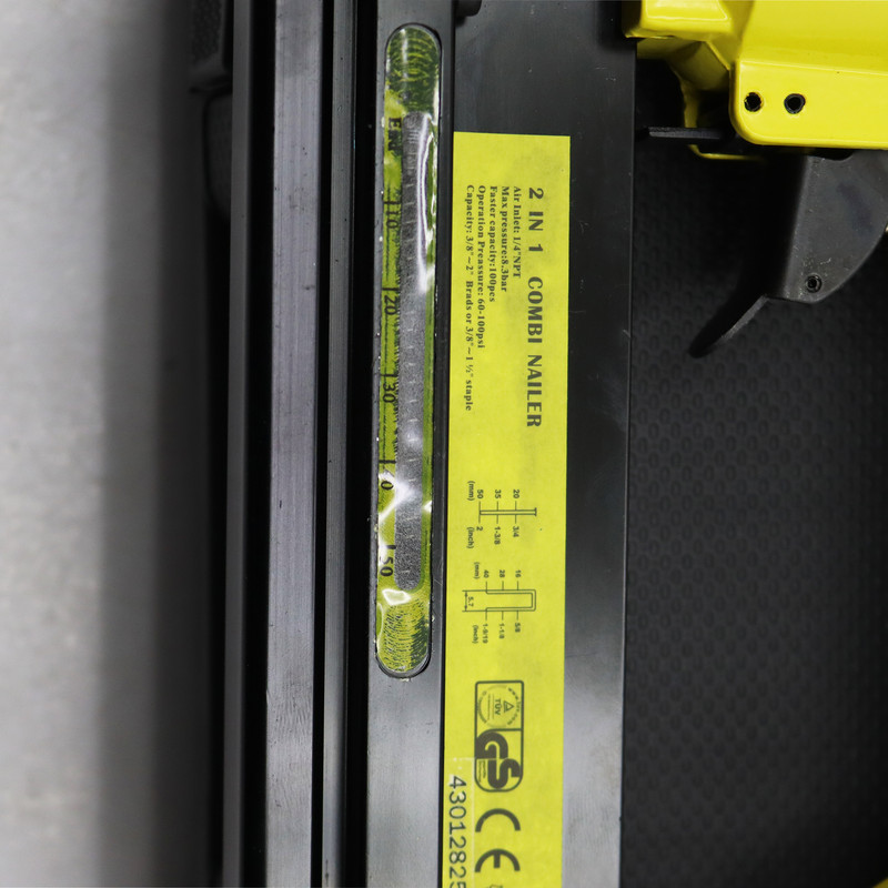 | سایر توضیحات | - دستگاه دو کاره میخ کوب و منگنه کوب -کیفیت بسیار بالا در کار برای کار در کارگاه و مداوم - طول منگنه: ۴۰ میلیمتر - عرض منگنه: ۵.۷ میلیمتر -طول میخ: ۵۰ میلیمتر - ضخامت میخ: ۱ میلیمتر - حداکثر فشار مجاز ورودی به دستگاه: ۸.۳ بار - دارای سیستم جذب لرزش -مناسب کار صنعتی -بسیار سبک و مستحکم -سرعت بالا با دوام بالا در کار - وزودی هوا : 1/4 اینچ |