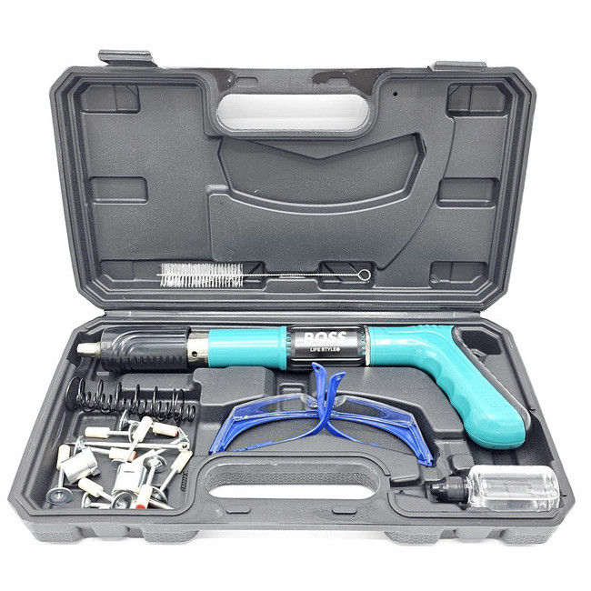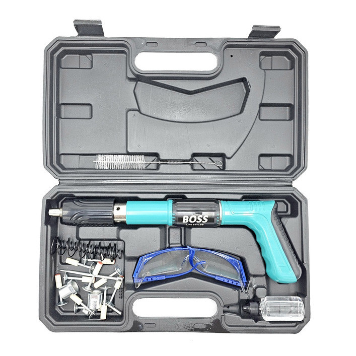 امکان استفاده در بتن، پلاستیک، ورق های نازک فلزی، چوب و ... را دارد xقابلیت استفاده میخ تا 5 سانتیمتر را دارد xکارکرد ساده و قوی دارد xبدون نیاز به چاشنی انفجاری جداگانه می باشد xبسیار سبک، کم حجم وقابل حمل می باشد xمحصولی جدید و با تکنولوژی به روز جهت جایگزینی برای میخکوب های والتی، کامرکس و ... می باشد xبدون نیاز به چاشنی انفجاری می باشد xدارای کیف حمل، عینک، فرچه، فنر یدک می باشد تفنک میخکوب ابزاری است مشابه تفنگ بادی است. تفنگ میخکوب بتن برای اتصال پلیت ها و صفحات مختلف به بتن می باشد. البته مصارف دیگری از جمله اتصال انواع توری های مشبک و غیره به صفحه های بتنی و مصالح ساختمانی را نیز دارد. این تفنگ ها به وسیله چاشنی میخ موجود در خان تفنگ را با شدت به سمت هدف شلیک کرده و واشری که بر روی میخ قرار دارد صفحه را بر روی بتن نگه می دارد. با قرار دادن چاشنی مخصوص در داخل دستگاه و قرار دادن میخ در محل تعیینشده، میتوانید از این ابزار استفاده کنید. چاشنیهایی که برای این محصول در نظر گرفتهاند در دو نوع و برای کوبیدن میخ در فلز یا بتن هستند. نوع میخی که برای این دستگاه مورد استفاده قرار میگیرد، از گونههای واشردار است. از این دستگاه در شغلهای مختلف که با چوب و فلز سروکار دارند، استفاده میکنند.