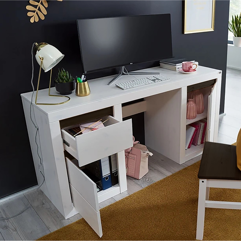 لطفا دقت فرمایید: دکوراسیون داخلی هیراد، طراح و تولید کننده اصلی این محصول با نام تجاری هیراد است. این محصول دارای لیبل برجسته هیراد می باشد. لطفا قبل از خرید نام فروشنده را بررسی فرمایید.میز تحریر هیراد مدل T119 با ظاهری ساده و زیبا، میزی کارآمد و مناسب جهت اتاق کار و یا اتاق فرزند شماست.با توجه به سادگی ظاهر، قابل ست شدن با انواع دکوراسیون در منزل می باشد.میزهای تحریر یکی از کاربردیترین و ضروریترین لوازم برای خانه و محل کار هستند.این محصول دارای یک کشو و دو کمد میباشد و مناسب کامپیوتر های خانگی و لپتاپ است. طراحی شیک این محصول باعث شده انتخاب خوب و مناسبی برای افراد سخت پسند که با کمبود فضا در محیط کار یا اتاق مواجه هستند باشد. جنس محصول ام دی اف می باشد.ابعاد این محصول به شرح زیر می باشد: