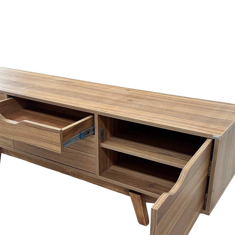 با انتخاب رنگ مناسب، میتوانید میز خود را سفارش دهید.کشو های این محصول، عمیق و جادار در اندازه های یکسان هستند. همچنین طراحی میز تلویزیون هیراد مدل TV101 به سبک Mid-century است. دارای استحکام و کیفیت بینظیری بوده و برای ساخت آن از استاندارد های اروپایی استفاده شده است.جنس این محصول ام دی اف می باشد ابعاد محصول به این شرح می باشد طول 160 عرض 40 ارتفاع 50