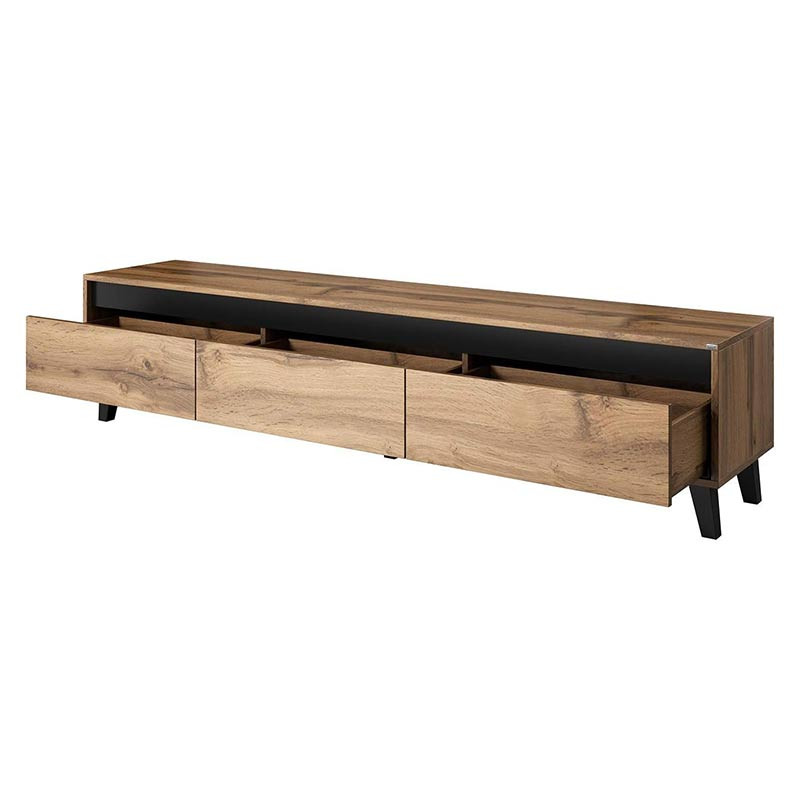این میز تلویزیون با کشوهایی کشیده، عمیق و جادار، فضای مناسبی برای نگهداری انواع وسایل جانبی، کتاب یا دکوریها فراهم میکند. همچنین ابعاد استاندارد آن باعث میشود برای تلویزیونهایی در سایزهای مختلف کاملاً مناسب و کاربردی باشد.
