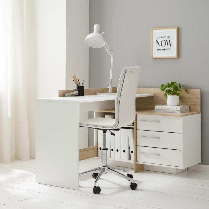 لطفا دقت فرمایید: دکوراسیون داخلی هیراد، طراح و تولید کننده اصلی این محصول با نام تجاری هیراد است. این محصول دارای لیبل برجسته هیراد می باشد. لطفا قبل از خرید نام فروشنده را بررسی فرمایید. این میز دارای 3کشو و قفسه می باشد. جنس محصول ملامینه می باشد. رنگ چوب در این محصول ثابت بوده و شما می توانید رنگ سفید بدنه را تغییر دهید. با انتخاب رنگ مناسب، میز هیراد مدل M916 خود را سفارش دهید