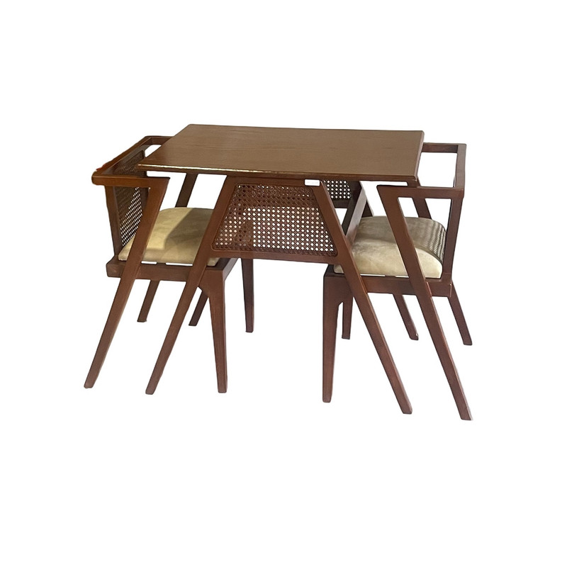میز و صندلی غذاخوری کمجا یک محصول بسیار مفید و کارآمد و در عین حال با کمترین فضای اشغالی می باشد. این میز و صندلی های گالری آشنایی یکی از با کیفیت ترین و زیباترین محصولات است که با طراحی زیبایی که دارند، بسیار جذاب می باشند. این میز و صندلی ضخامت چوب استفاده شده در آن حدود 6 سانتی متر میباشد. این محصول تحمل وزن بسیار بالایی داشته و جزء کارهای بسیار پرفروش می باشد و طرفداران زیادی دارد. توجه کنید که این محصول دارای ضخامت چوب بالایی است.