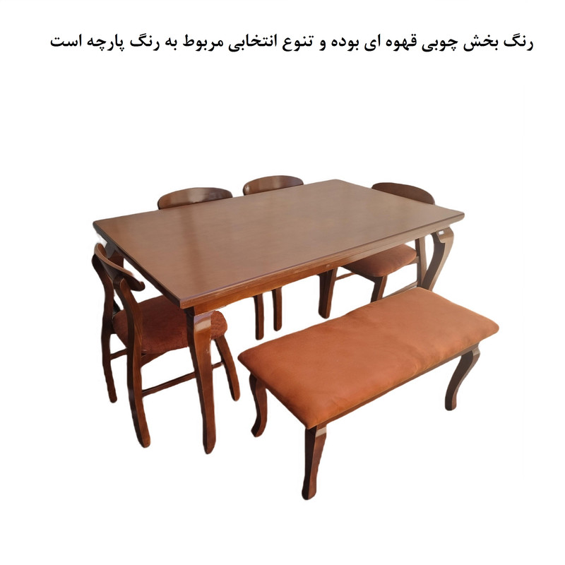 سایر توضیحات تنوع رنگ انتخابی شما مربوط به رنگ پارچه صندلی ها می باشد. | درجه بندی کیفیت : رنگ آمیزی و نجاری عالی و مقرون به صرفه | فروشنده اصلی این محصول برند گالری چوب آشنایی بوده، در هنگام خرید به این موضوع توجه فرمایید.| نماهایی که در دید نیستند، رنگ اصلی چوب است. | به مشخصات دقیق محصول دقت کرده و توجه کنید محصول با مشخصات ذکر شده را فقط گالری چوب آشنایی ارائه مینماید. | چوب روسی(نراد).| ممکن است بدلیل عکاسی تفاوت جزئی در رنگها باشد.