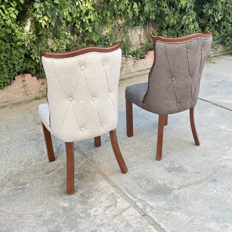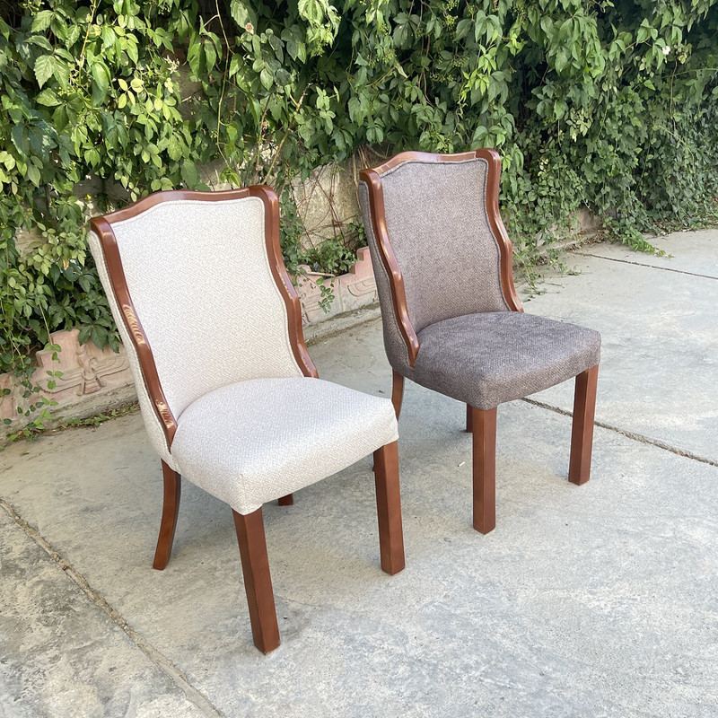 | توضیحات صندلی | رنگ بخش چوبی قهوه ای و ثابت میباشد. | تنوع رنگ انتخابی شما مربوط به رنگ پارچه صندلی ها می باشد. | جنس پارچه استفاده شده خارجی می باشد | ارتفاع صندلی از زمین تا نشیمن حدود ۴۵ سانتی متر است ارتفاع کل صندلی(از زمین تا بالاترین قسمت پشتی) حدود ۹۵ سانتی متر .| نشیمن فوق العاده راحت جنس زیر کار صندلی اسفنج (ابر).| ابعاد حدودی است |