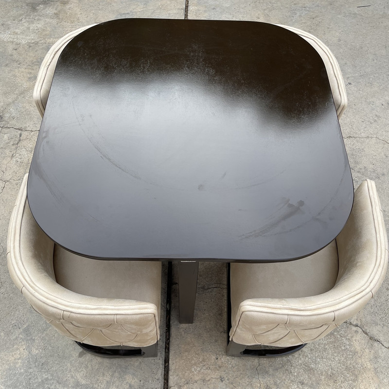 میز و صندلی های غذاخوری یکی از اساسی ترین نیازهای هر خانه می باشد که باید در خرید آن دقت و توجه کافی داشت که در عین اینکه جنس و کیفیت مناسبی دارد، همچنین طراحی جذابی نیز داشته باشد، میز و صندلی نهارخوری ارائه شده توسط گالری چوب آشنایی، با طراحی جدید و دارای زیبایی خاص یکی از جذابترین و شیکترین ستهای نهارخوری موجود در بازار است که برای فضای خانه بسیار مناسب می باشد و می توان زیبایی خاصی را با آن به خانه بخشید. این میز و صندلی مناسب 4 نفر بوده و رنگ بخشهای چوبی آن ثابت و قهوه ای تیره بوده و ثابت بوده، رنگ پارچه بر اساس تنوع قابل انتخاب است.