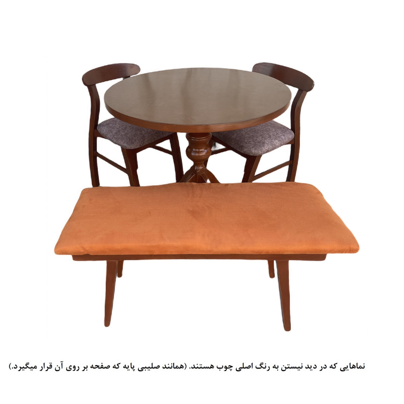| توضیحات صندلی | نیمکت مناسب دو نفره، رنگ بخش چوبی فندقی و ثابت میباشد. | تنوع رنگ انتخابی شما مربوط به رنگ پارچه صندلی ها می باشد. | جنس پارچه استفاده شده مسکو خارجی می باشد | ارتفاع صندلی از زمین تا نشیمن حدود 45 سانتی متر است ارتفاع کل صندلی(از زمین تا بالاترین قسمت پشتی) حدود 80 سانتی متر نشیمن فوق العاده راحت جنس زیر کار صندلی اسفنج (ابر) |