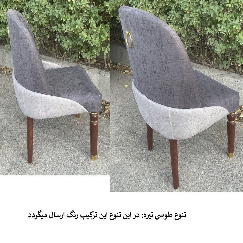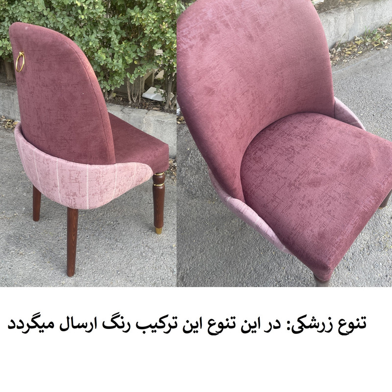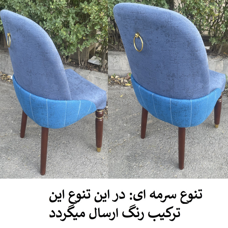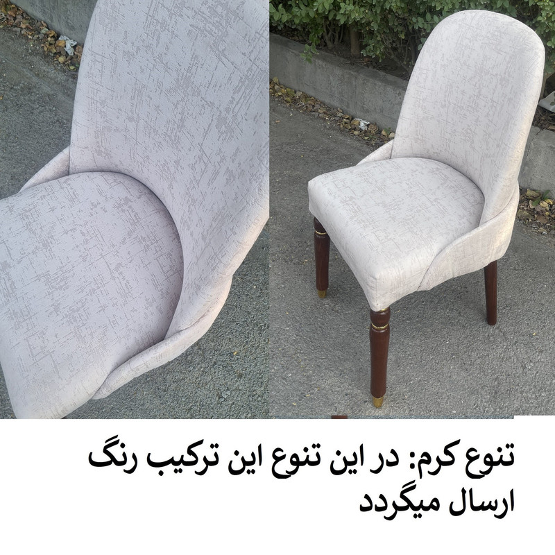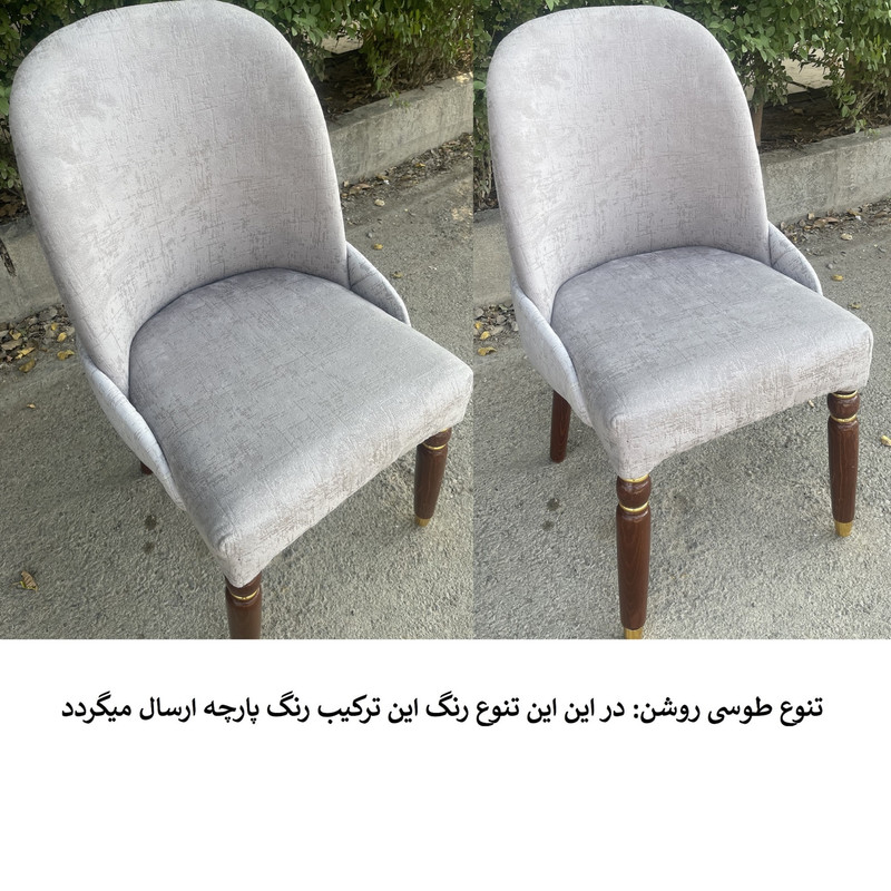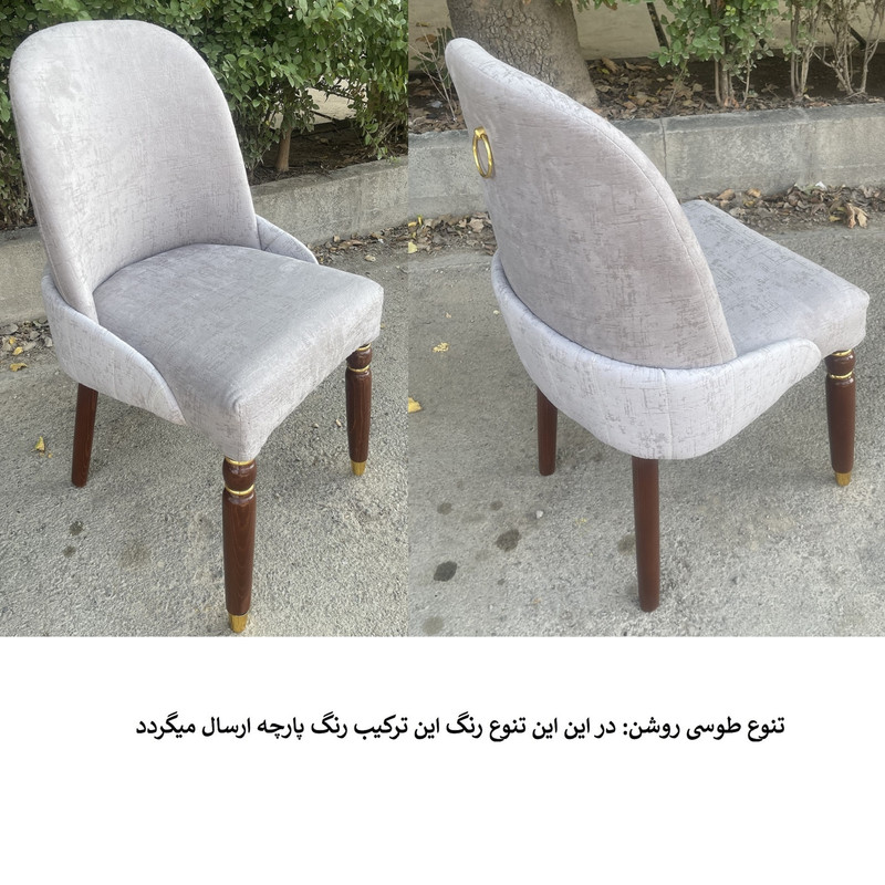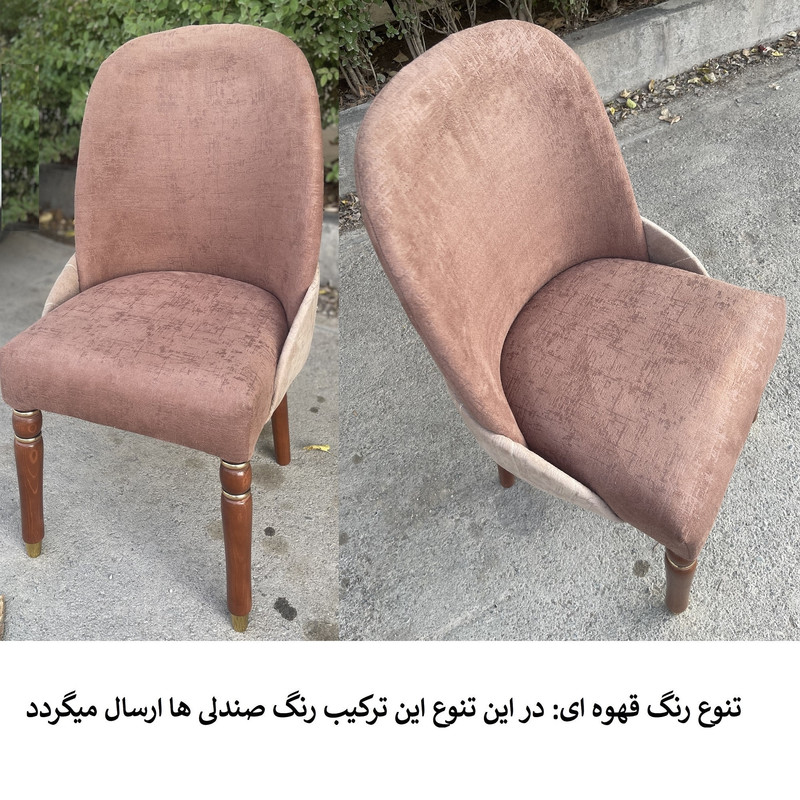 | توضیحات صندلی | رنگ بخش چوبی قهوه ای و ثابت میباشد. | تنوع رنگ انتخابی شما مربوط به رنگ پارچه صندلی ها می باشد. | جنس پارچه استفاده شده خارجی می باشد | ارتفاع صندلی از زمین تا نشیمن حدود 45 سانتی متر است ارتفاع کل صندلی(از زمین تا بالاترین قسمت پشتی) حدود 95 سانتی متر .| نشیمن فوق العاده راحت جنس زیر کار صندلی اسفنج (ابر).| ابعاد حدودی است |