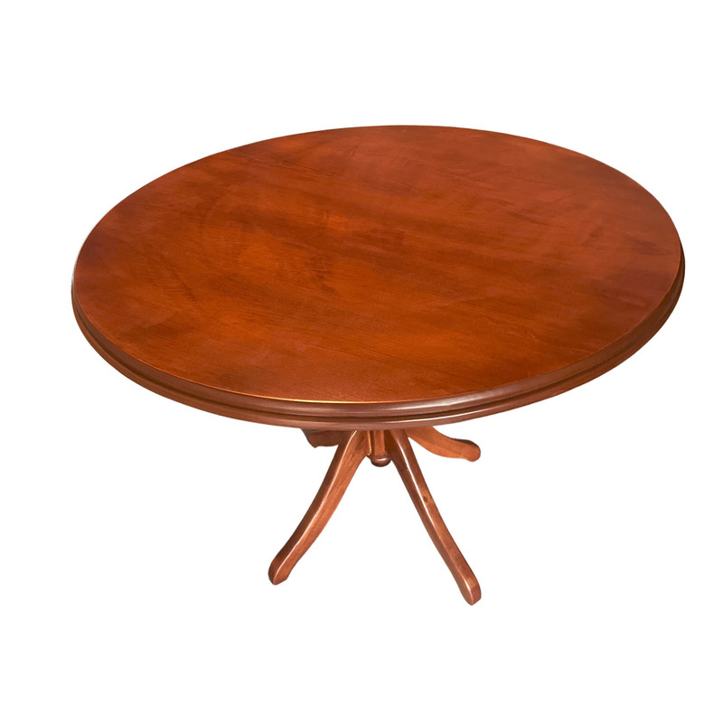 | توضیحات میز | قطر صفحه میز 90 الی 100 سانتیمتر دارای صفحه موجدار شکیل و زیبا(طرح اصلی چوب) صفحه میز روکش چوب راش اتصالات بسیار محکم در پایه میز نماهایی که در دید نیستند، به رنگ اصلی چوب است.(همانندصلیبی پایه میز که صفحه بر روی آن قرار میگیرد) |