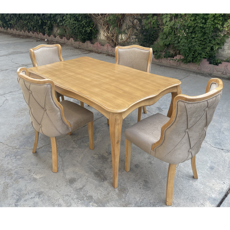 میز و صندلی های غذاخوری یکی از اساسی ترین نیازهای هر خانه می باشد که باید در خرید آن دقت و توجه کافی داشت که در عین اینکه جنس و کیفیت مناسبی دارد، همچنین طراحی جذابی نیز داشته باشد، میز و صندلی نهارخوری ارائه شده توسط گالری چوب آشنایی، با طراحی جدید و دارای زیبایی خاص یکی از جذابترین و شیکترین ستهای نهارخوری موجود در بازار است که برای فضای خانه بسیار مناسب می باشد و می توان زیبایی خاصی را با آن به خانه بخشید. این میز و صندلی مناسب 4 نفر بوده و رنگ بخشهای چوبی آن ثابت و خودرنگ بوده و رنگ پارچه بر اساس تنوع قابل انتخاب است.