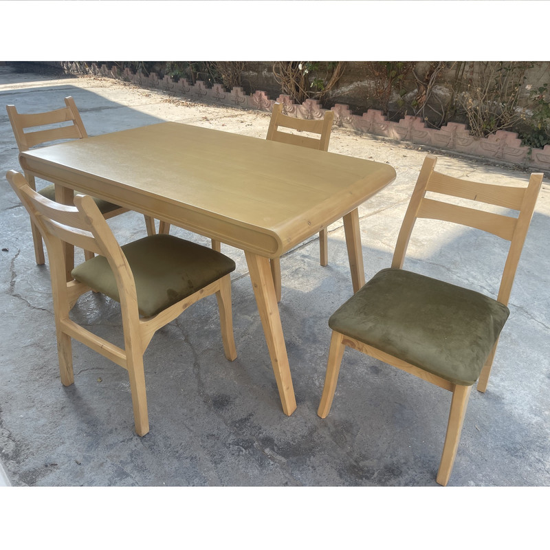 میز و صندلی های غذاخوری یکی از اساسی ترین نیازهای هر خانه می باشد که باید در خرید آن دقت و توجه کافی داشت که در عین اینکه جنس و کیفیت مناسبی دارد، همچنین طراحی جذابی نیز داشته باشد، میز و صندلی نهارخوری ارائه شده توسط گالری چوب آشنایی، با طراحی جدید و دارای زیبایی خاص یکی از جذابترین و شیکترین ستهای نهارخوری موجود در بازار است که برای فضای خانه بسیار مناسب می باشد و می توان زیبایی خاصی را با آن به خانه بخشید. این میز و صندلی مناسب 4 نفر بوده و رنگ بخشهای چوبی آن ثابت و خودرنگ بوده و رنگ پارچه بر اساس تنوع قابل انتخاب است.