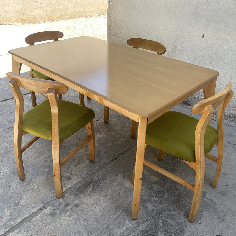 میز و صندلی های غذاخوری یکی از اساسی ترین نیازهای هر خانه می باشد که باید در خرید آن دقت و توجه کافی داشت که در عین اینکه جنس و کیفیت مناسبی دارد، قیمت آن نیز مناسب بوده و همچنین طراحی جذابی نیز داشته باشد، این میز و صندلی نهارخوری ارائه شده توسط گالری چوب آشنایی، با طراحی جدید و دارای زیبایی خاص یکی از جذابترین و شیکترین ستهای نهارخوری موجود در بازار است که برای فضای خانه بسیار مناسب می باشد و می توان زیبایی خاصی را با آن به خانه بخشید. این میز و صندلی مناسب 4 نفر بوده و رنگ بخشهای چوبی آن خود رنگ (طبق تصویر) بوده و ثابت است و رنگ پارچه بر اساس تنوع رنگ قابل انتخاب می باشد. جنس پارچه استفاده شده خارجی می باشد.