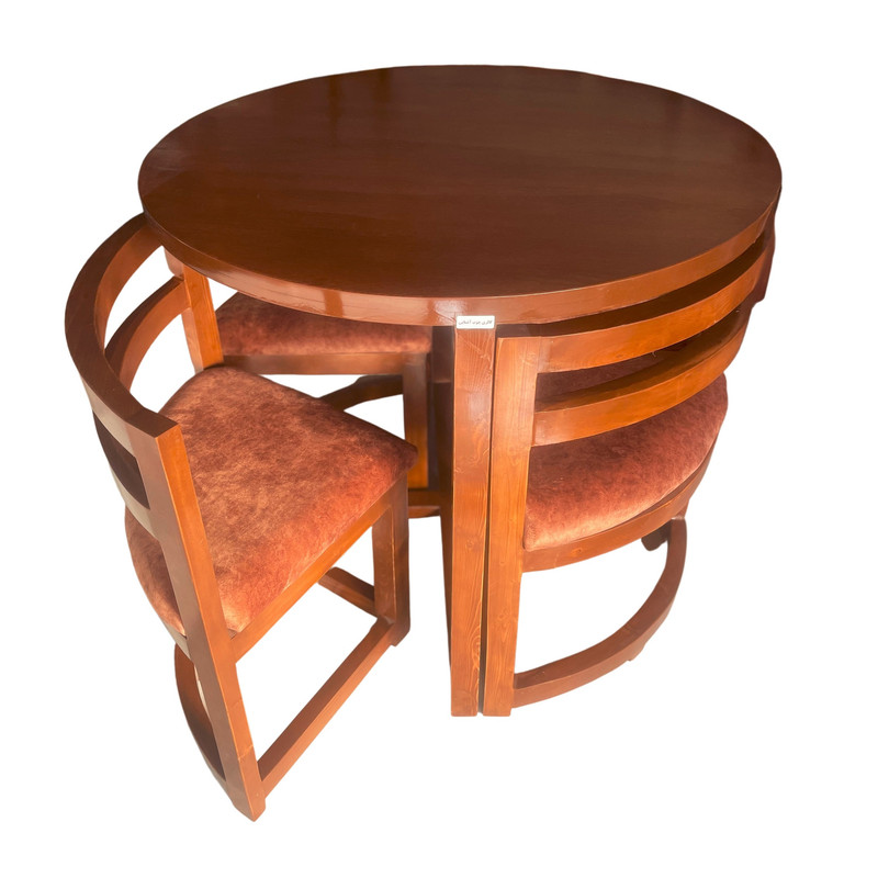 | توضیحات میز | قطر میز 90 سانتیمتر ضخامت چوب در پایه های میز حدودا 5x3 سانتیمتر(در تصویر مشخص است) دارای صفحه موجدار شکیل و زیبا(طرح اصلی چوب) صفحه میز روکش چوب راش اتصالات محکم |