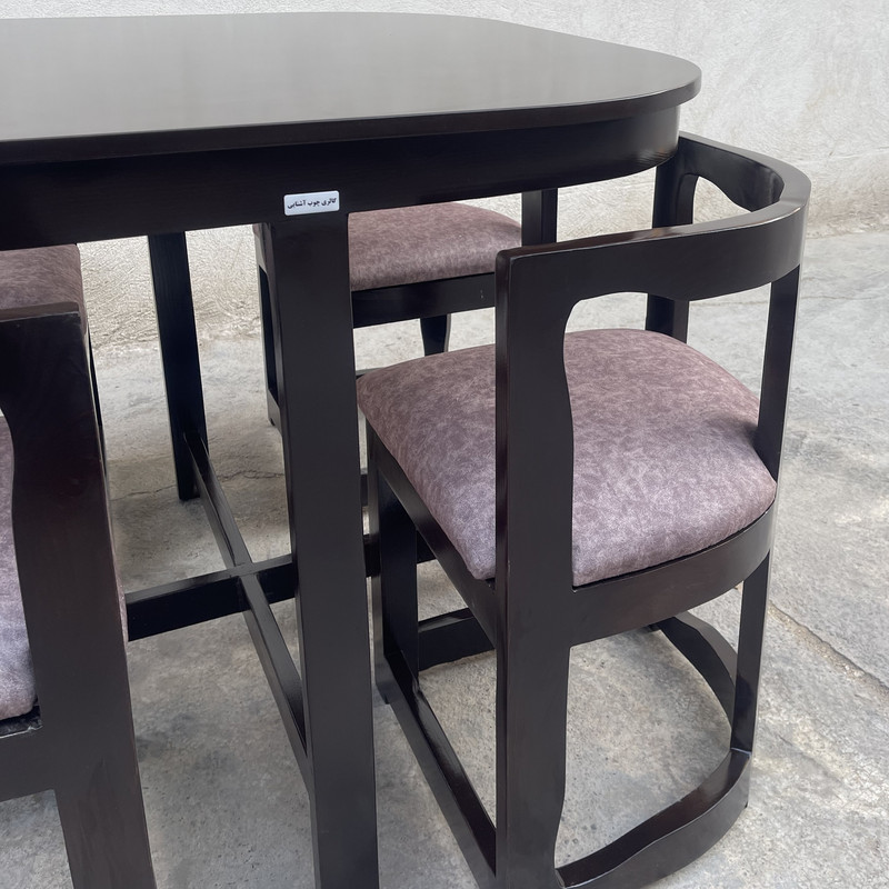 میز و صندلی غذاخوری کمجا یک محصول بسیار مفید و کارآمد و در عین حال با کمترین فضای اشغالی می باشد. این میز و صندلی های گالری آشنایی یکی از با کیفیت ترین و زیباترین محصولات است که با طراحی زیبایی که دارند، بسیار جذاب می باشند. این میز و صندلی ضخامت چوب استفاده شده در آن حدود 6 سانتی متر میباشد. این محصول تحمل وزن بسیار بالایی داشته و جزء کارهای بسیار پرفروش می باشد و طرفداران زیادی دارد. توجه کنید که این محصول دارای ضخامت چوب بالایی است.