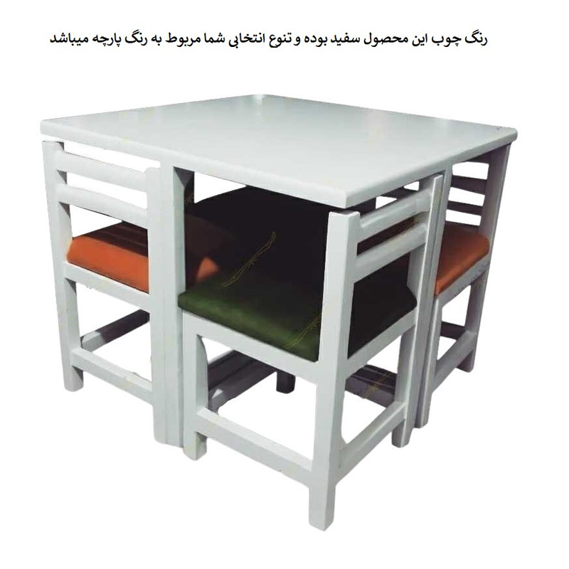 سایر توضیحات رنگ بخش چوبی این کار سفید بوده، تنوع رنگ انتخابی شما مربوط به رنگ پارچه صندلی ها می باشد. |درجه بندی کیفیت : نجاری و رنگ آمیزی عالی و بسیار مقرون به صرفه.| فروشنده اصلی این محصول برند گالری چوب آشنایی بوده و در هنگام خرید به این موضوع توجه فرمایید و کیفیت اصلی این محصول رو از همین فروشنده تهیه نمایید| ممکن است به دلیل نور عکاسی رنگها تفاوت جزئی داشته باشد.| دارای موجهای شکیل و زیبا(بدلیل طرح اصلی چوب).| به مشخصات دقیق محصول دقت کرده و توجه کنید محصول با مشخصات ذکر شده را فقط گالری چوب آشنایی ارائه مینماید.| نماهایی که در دید نیستند، به رنگ اصلی چوب است.(همانندصلیبی پایه میز که صفحه بر روی آن قرار میگیرد) .|