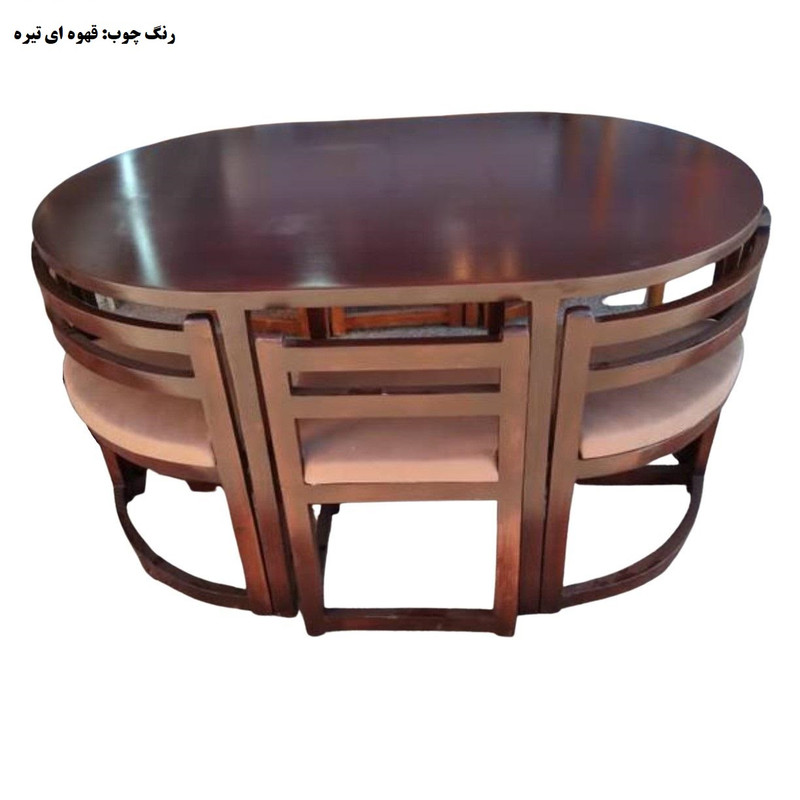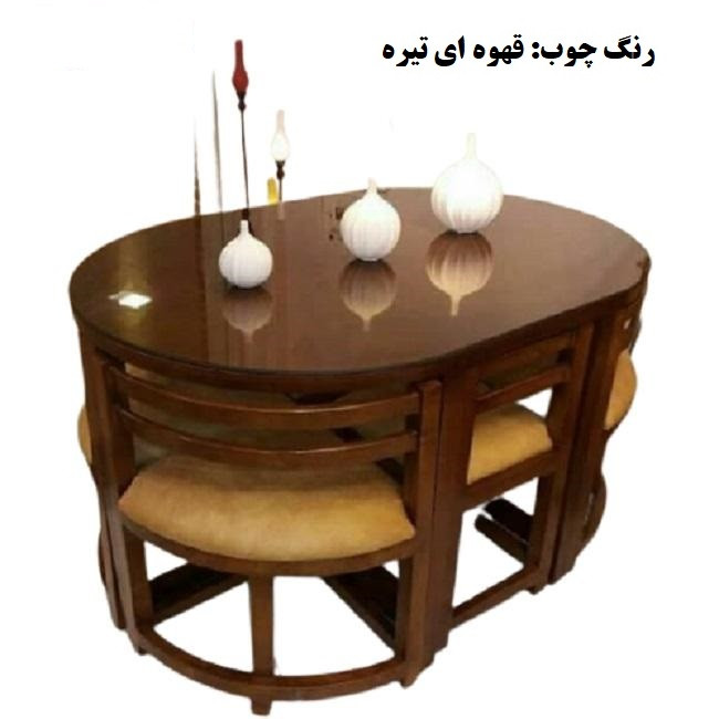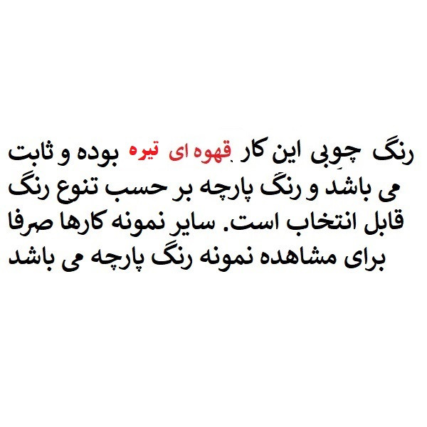 | سایر توضیحات | رنگ بخش چوبی این محصول قهوه ای تیره بوده و ثابت است، رنگ نشیمن بر اساس تنوع رنگ قابل انتخاب است جنس نشمین صندلی ها چرم می باشد |